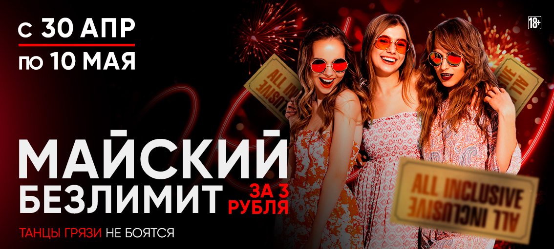 Продержись майские праздники в эпицентре событий. С нас – твои любимые резиденты, дерзкий MC, шоу моменты от барменов, безлимит на грязные танцы и ЖОСКИЙ заПОЙ в караоке.